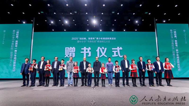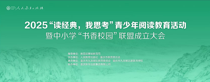 2025年11月15日,“2025‘读经典,我思考’青少年阅读教育活动暨中小学‘书香校园’联盟成立大会”在重庆成功举办。本次活动旨在深入落实《教育强国建设规划纲要(2024—2035年)》提出的“深入实施青少年学生读书行动”,加快扩大“书香校园”覆盖面。活动在教育部基础教育司指导下,由人民教育出版社与重庆市教育委员会联合主办、重庆市九龙坡区谢家湾学校承办、重庆新华出版集团有限公司协办。来自教育部基础教育司、中宣部出版局、中国出版协会、中国编辑学会、重庆市教委、九龙坡区委、人民教育出版社、重庆新华出版集团有限公司的领导、嘉宾,以及来自全国的书香校园代表、重庆市教师学生家长代表等共计700余人参加了本次活动。