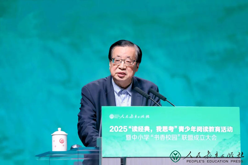 人教社党委书记、社长黄强在致辞中表示,今年是习近平总书记给人教社老同志回信5周年。5年来,人教社为促进青少年阅读作出了积极的努力:一是推进高质量教材建设,以教材培根铸魂,坚定文化自信。人教社修订出版的第十二套义务教育教材已经正式投入使用,新教材精选了大量体现中华优秀传统文化、革命文化和社会主义先进文化的经典篇目和内容。二是以品牌活动增进青少年的阅读兴趣。人教社举办阅读教育论坛,让名家、作家走进校园;开展“典耀中华——‘人教杯’诵读活动”,推动青少年诵读经典;开展大规模捐赠活动,把好书送到广大乡村和边远地区的学校,促进优质阅读资源普惠均衡。三是开拓创新,以数字资源支撑青少年阅读方式变革。人教社遴选了“学党史树理想”“铸魂——与孩子一起感悟革命岁月”“中国古代100位科学家故事”“声声入耳”“中华经典资源库”共计5个系列约600集主题教育类数字资源,免费提供给国家中小学智慧教育平台,为青少年学生读书行动提供助力。