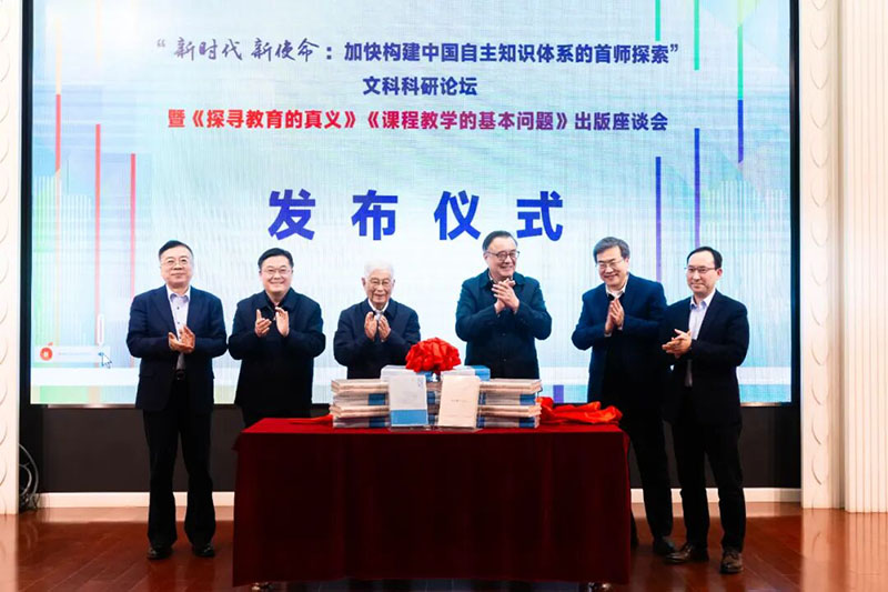 11月29日下午,由人民教育出版社与首都师范大学联合主办的“新时代 新使命:加快构建中国自主知识体系的首师探索”文科科研论坛暨《探寻教育的真义》《课程教学的基本问题》出版座谈会在京举办。