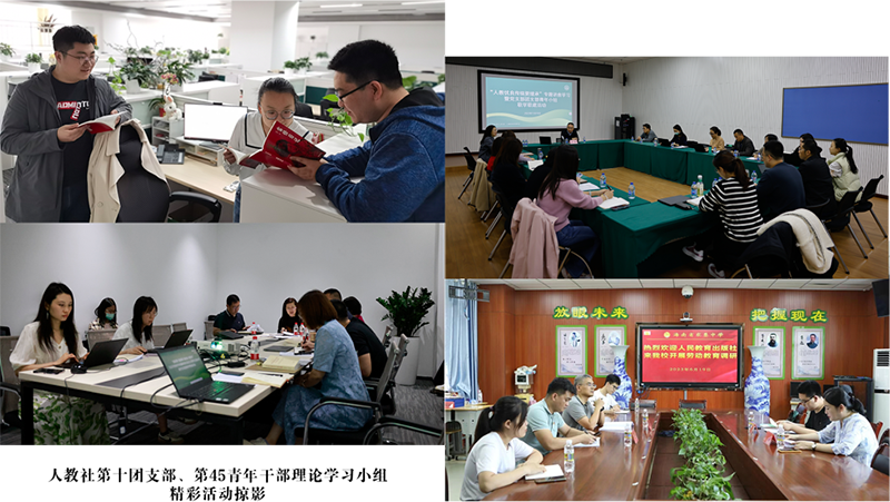 习近平总书记寄语青年要“勤学”:“非学无以广才,非志无以成学”“人才有高下,知物由学”“学如弓弩,才如箭镞”,并要求青年学以致用、学用相长。出版战线的广大青年尤要坚定理想信念、坚持以学为先,走好勤学善思的学习之路,走好政治过硬的信仰之路,走好践行宗旨的为民之路,走好砥砺奋进的实干之路,走好严于律己的修身之路。青年理论学习小组是加强青年理论武装的重要组织形式,是推动广大青年坚定理想信念、强化党性修养、提升能力水平的有力抓手。以青年理论学习小组为依托,人教社组织青年规律开展学习交流,有计划、有落实、有督促、有保障,有效凝聚了人教青年力量,扎实推进了青年理论学习取得新成效。人教青年必将在持续不断的理论学习和调研实践中筑牢思想根基、明晰前进方向、彰显忠诚本色,用实干和实绩回应习近平总书记对教材编研出版工作提出的殷切期望。
