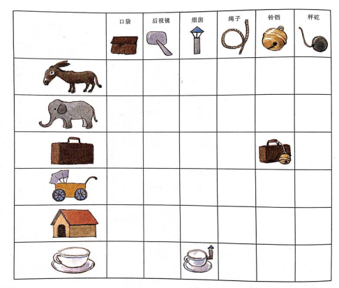 要是我们也有一瓶神奇的魔力胶水,给手提箱粘上铃铛,给咖啡杯粘上烟囱。像这样,把格子里每一行跟每一列的物品分别粘在一起,会是一个什么样的结果呢?类似这样的拼图游戏书中还有很多。有时需要把几种粘在一起,有时需要分开,秘密都藏在《走进奇妙的数学世界1》中,大家快来动手拼一拼吧!