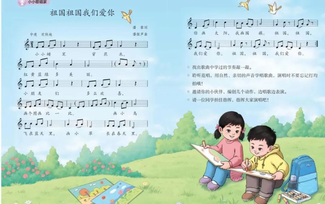 本课《祖国祖国我们爱你》是一堂唱歌课,同时进行爱国主义教育。