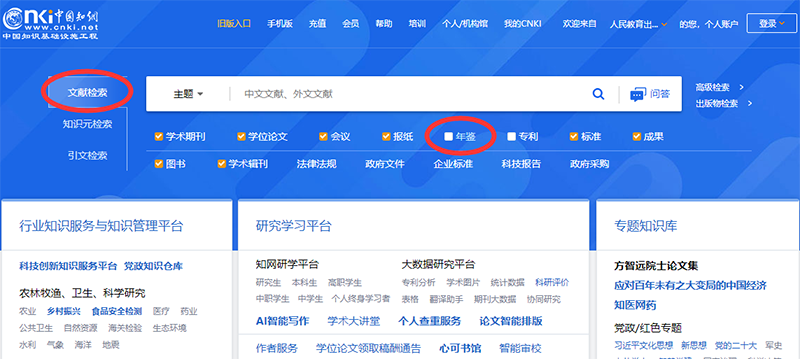 图书馆根据《人教图书馆2023年度数字资源使用情况调研》中各部门的反馈,为了满足读者对年鉴资源的需求,增加订购了CNKI中国年鉴网络出版总库。欢迎体验!