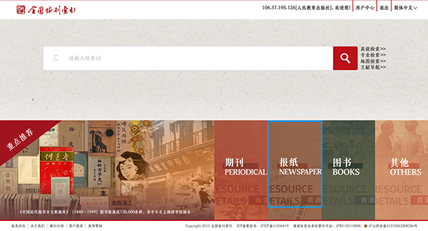 该库是《全国报刊索引》依托上海图书馆丰富的馆藏资源制作的大型全文数据库,计划收录1850—1951百余年间的近4000份中英文报纸,是对中国近代报纸全面、完整地揭示和呈现。不仅收录了《申报》《新闻报》《大公报》《时报》《民国日报》《中央日报》《益世报》《时事新报》《神州日报》等知名中文大报;还囊括《北华捷报》《字林西报》《大陆报》《上海泰晤士报》《大美晚报》等珍贵英文大报。