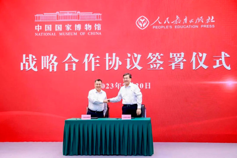 中国国家博物馆馆长王春法与人民教育出版社党委书记、社长黄强签署战略合作协议