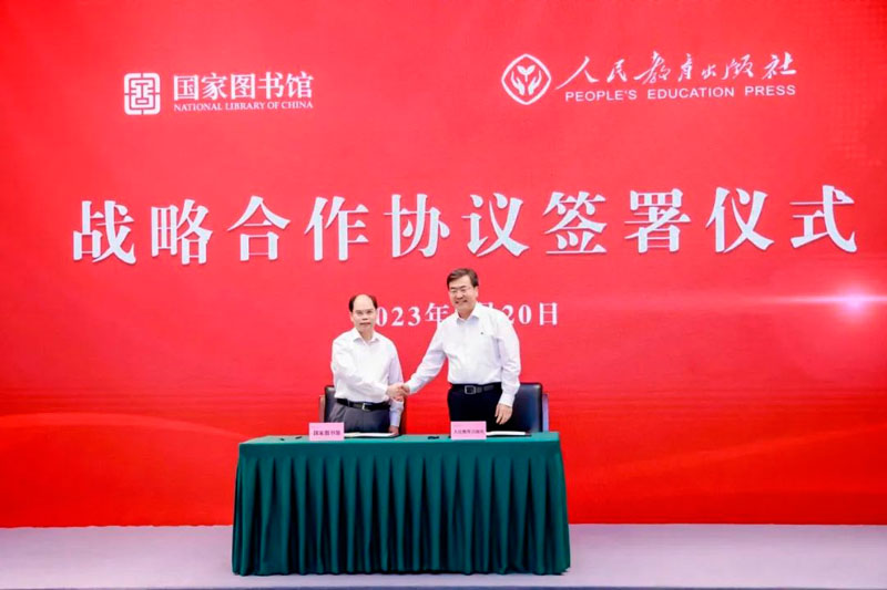 国家图书馆馆长熊远明与人民教育出版社党委书记、社长黄强签署战略合作协议