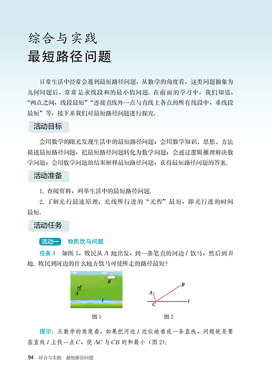 所属章节:综合与实践 最短路径问题