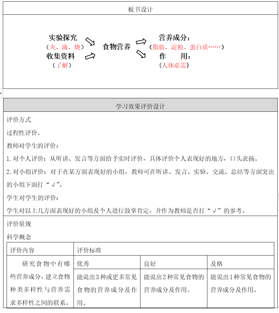 教学内容:《食物的营养》在《课标》中属于物质科学和生命科学领域。