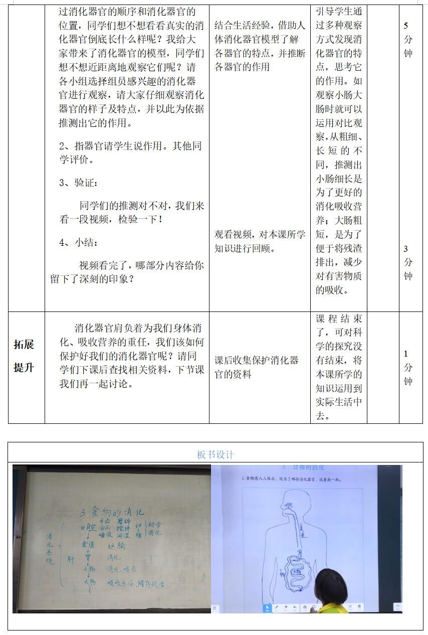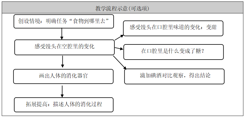本课的拓展与应用环节,可以鼓励学生大胆猜想,査找资料,了解食物在经过不同消化器官时发生的变化,并和他人分享自己的发现。