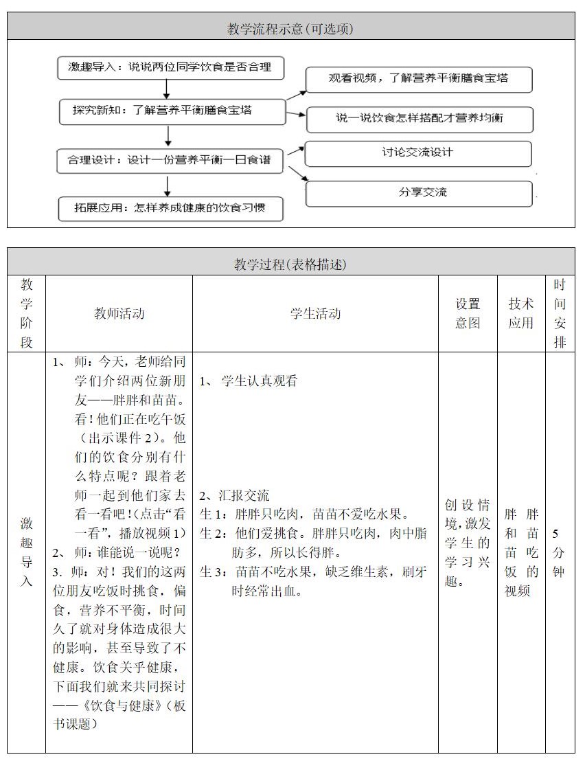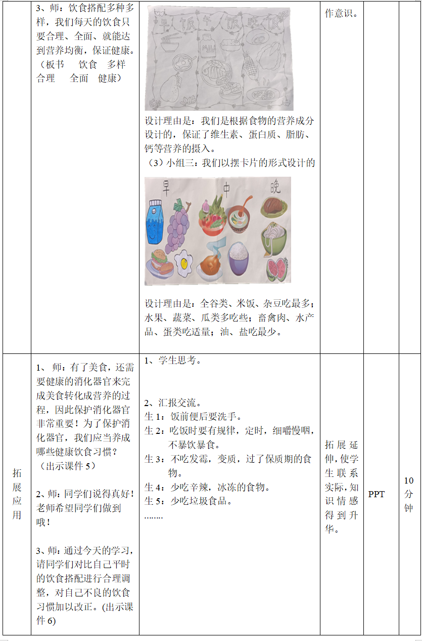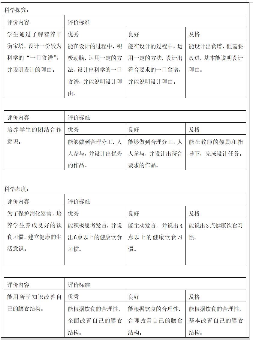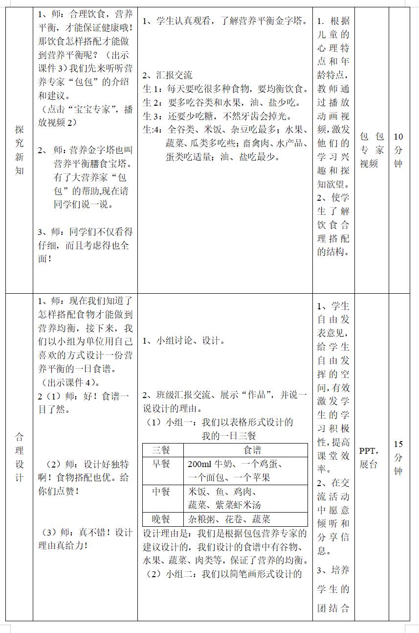 教学重点:学生通过了解营养平衡宝塔,设计一份较为科学的“一日食谱”