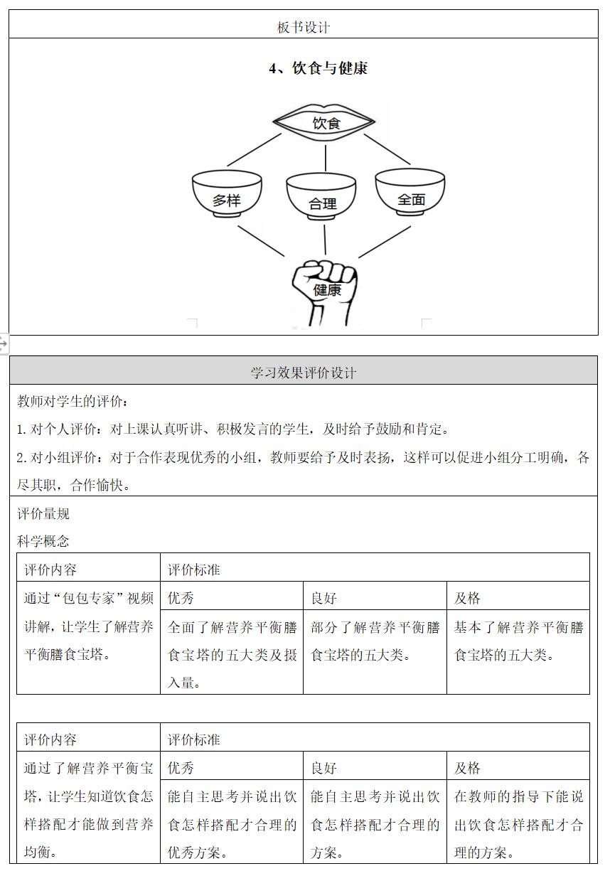 第4课《饮食与健康》教学设计