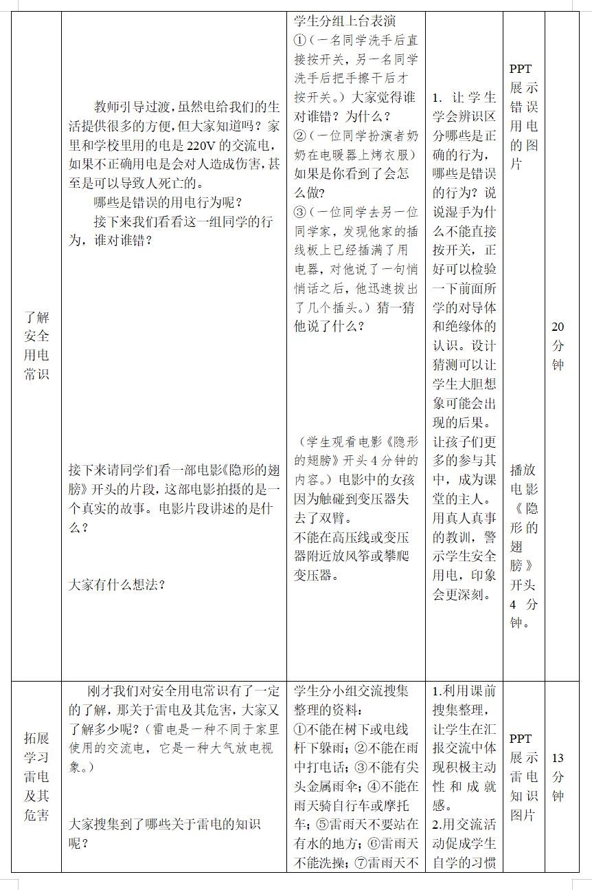 (4)用多媒体展示安全用电的PPT及如何预防雷电对人类的伤害的PPT。