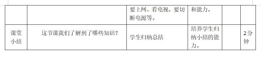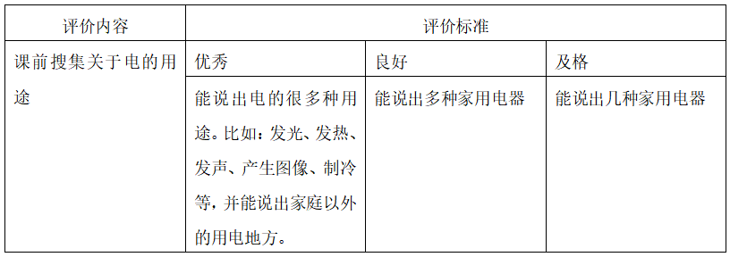 通过学生已有的生活经验,可以轻松地搜集到电在生活中的广泛用途,它不仅可以发光发热,还能播放音乐,收听广播,产生图像等各种功能,进一步认识到电的重要性。做为一名四年级的学生对安全用电常识还没有清晰的概念,对直流电和交流电还不太清楚。通过情景表演,强化安全用电常识。采用情景表演能激发学生的兴趣,能充分调动学生的积极性,使学生愿意主动学习。