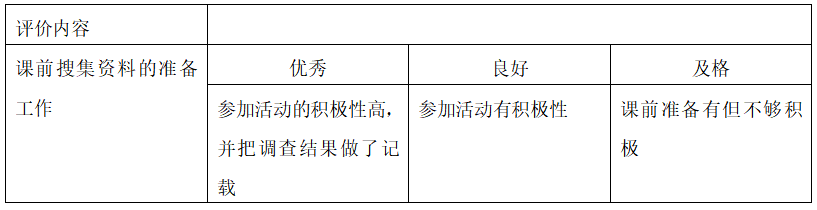 1.对个人评价:从课前搜集整理、听讲、汇报交流等方面表现好的给予表扬。