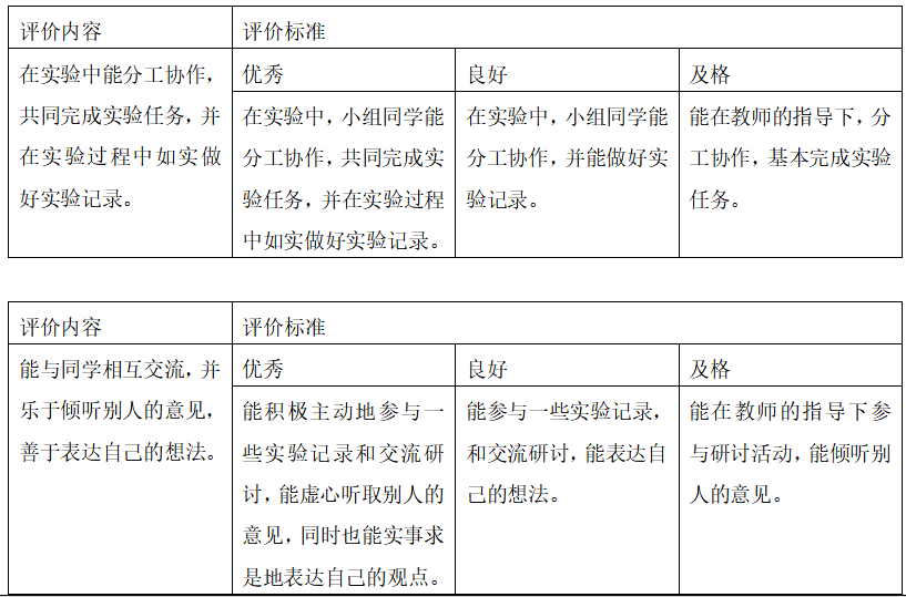 在实验中能分工协作,共同完成实验任务,并在实验过程中如实做好实验记录。能与同学相互交流,乐于倾听别人的意见,善于表达自己的想法。