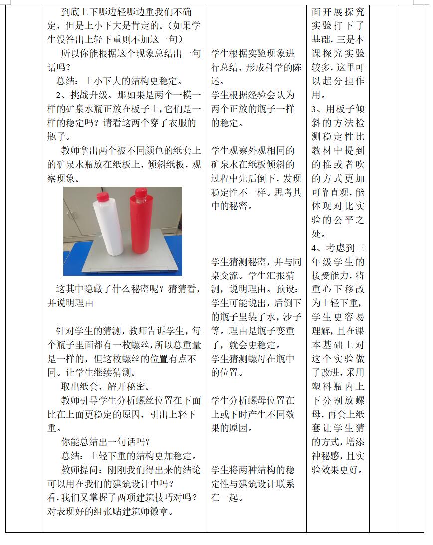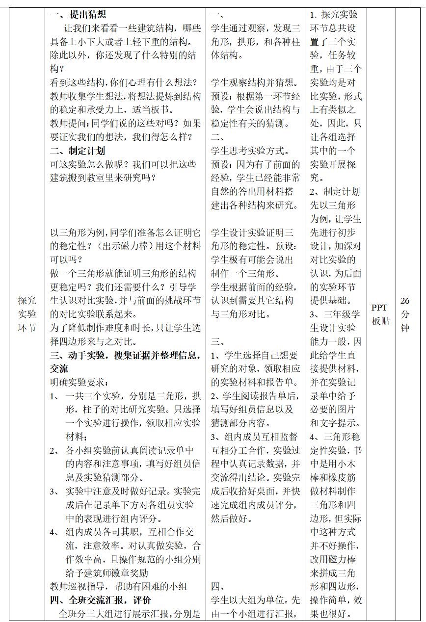 5.以分组实验的方式来进行稳定和承受力大比拼的实验,节约时间,让学生更集中精力于探究过程。