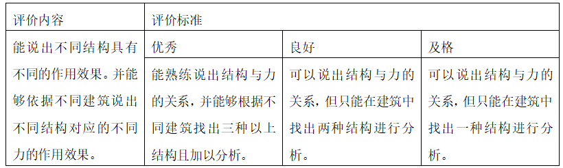 学生对结构与力的关系产生兴趣,真正带着探究的目光去研究建筑的不同结构所带来的不同力的效果,并能与现实人工世界联系起来。