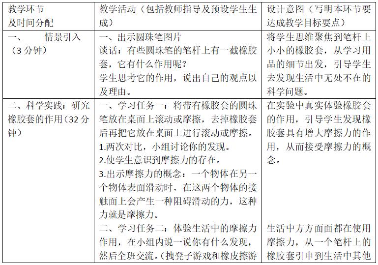 教师准备:带橡胶套的笔、不带橡胶套的笔、弹簧测力计、细线、螺母、砝码盒、地毯、活动手册、带靠背的凳子、课件。