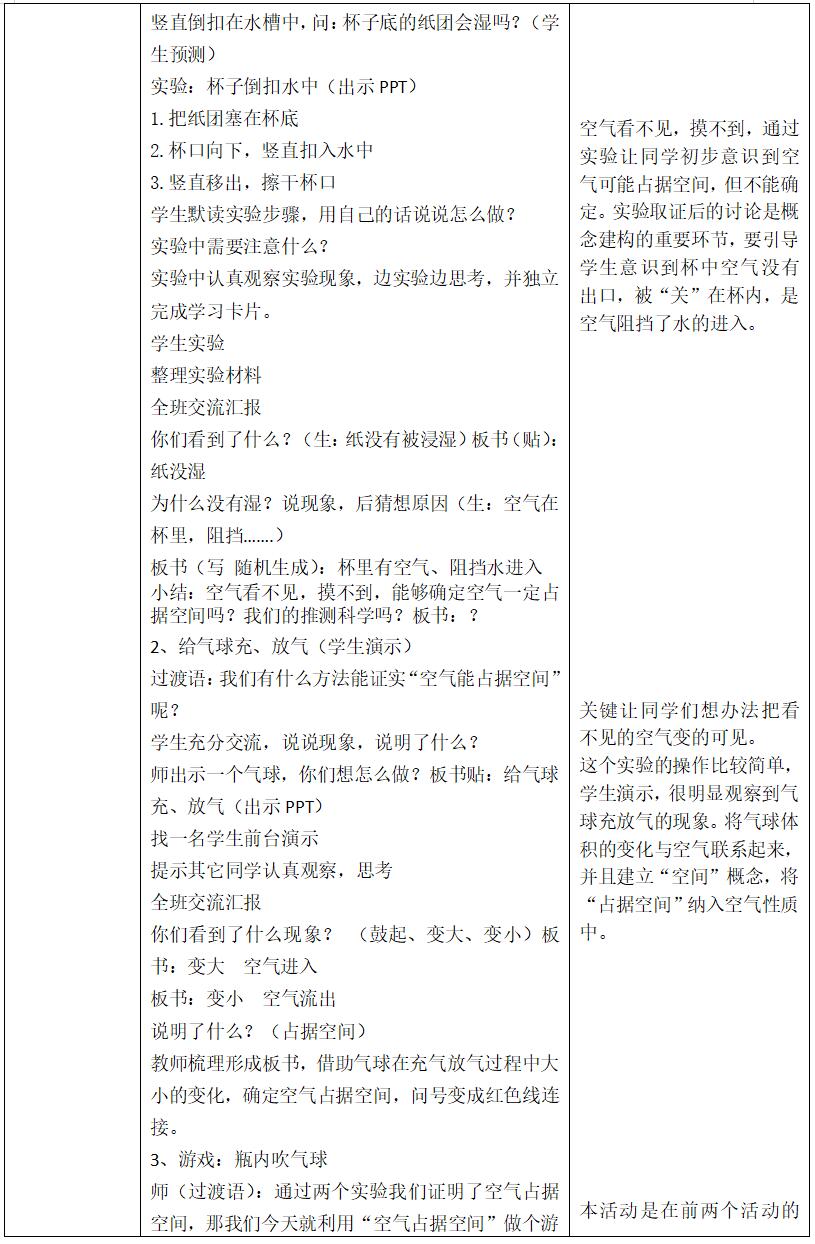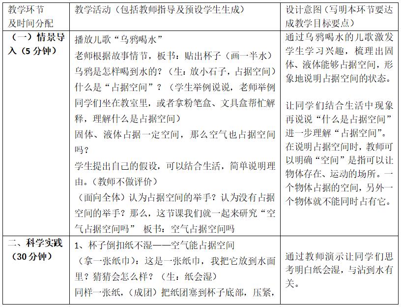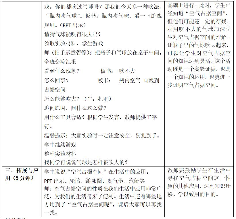 第11课《空气占据空间吗》教学设计