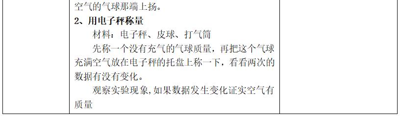 2. 能够记录称量空气的数据,并能够依据数据判断空气是否有质量。