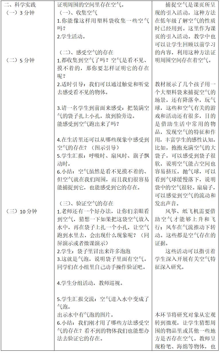 教学重点:引导学生用不同方法找空气,并证明空气就在我们的周围。