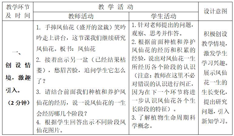 第8课《凤仙花的一生》教学设计