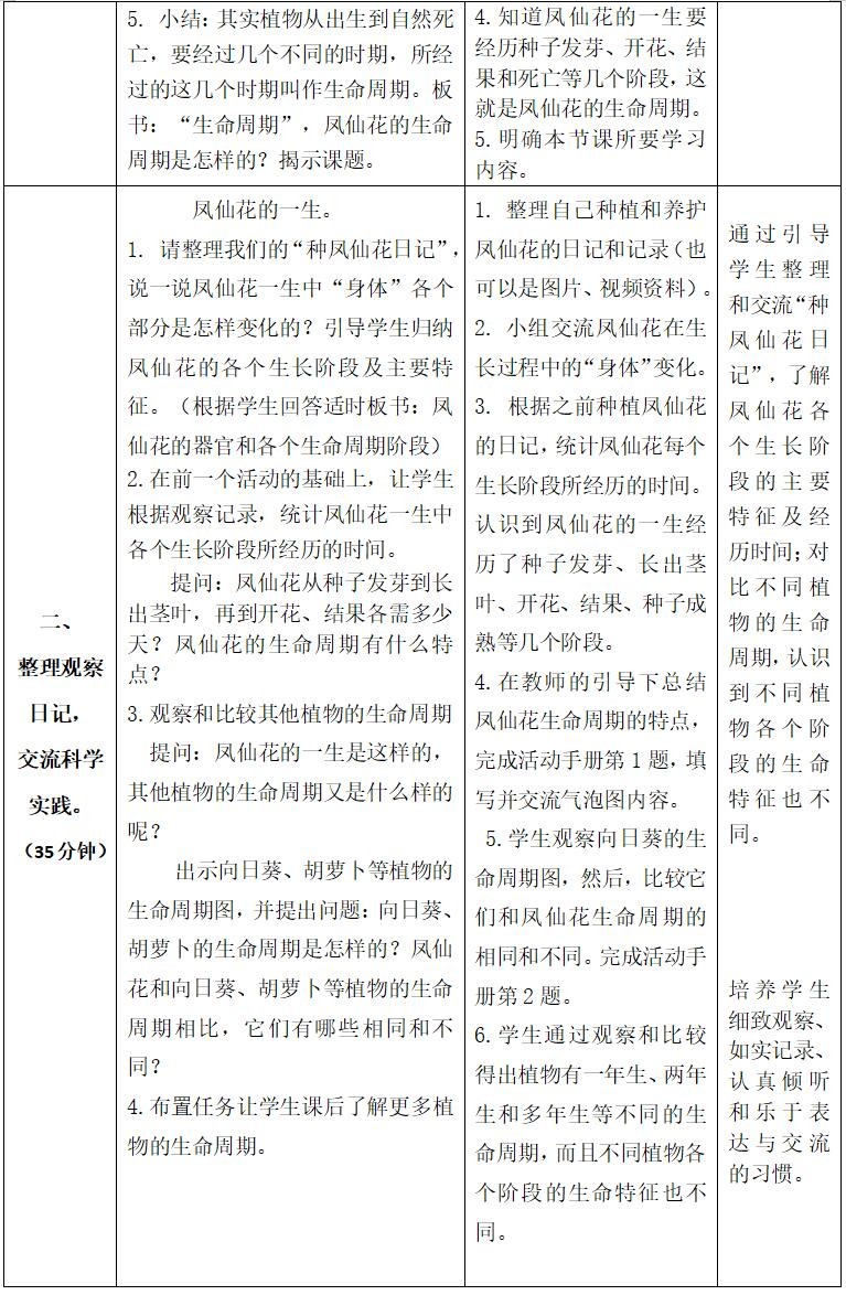 3.比较凤仙花和其他植物的生命周期,认识到植物生长的共同特点及了解植物生命周期的意义。