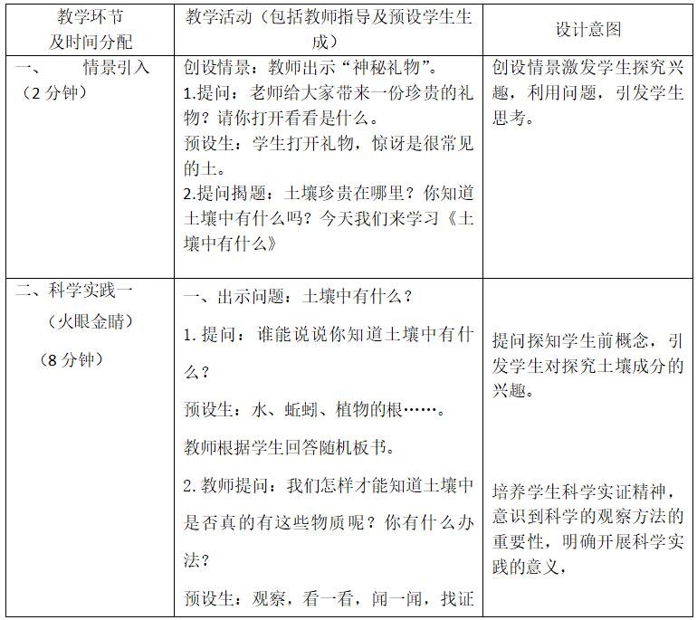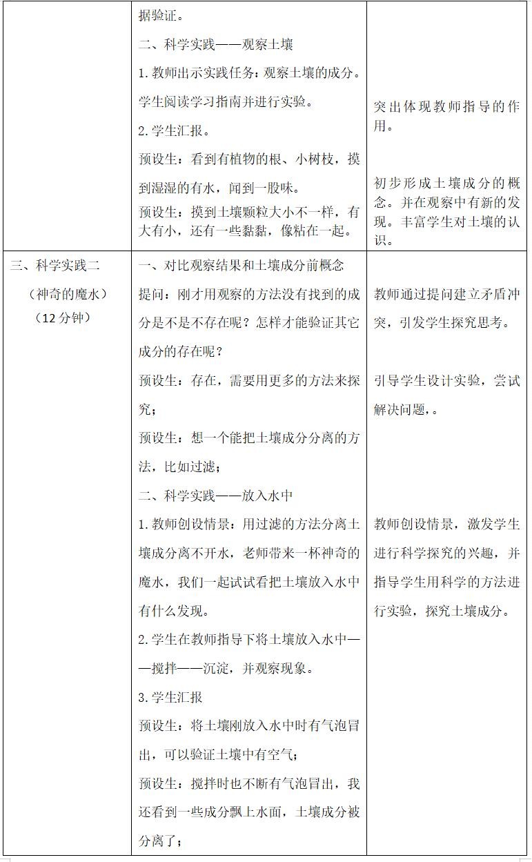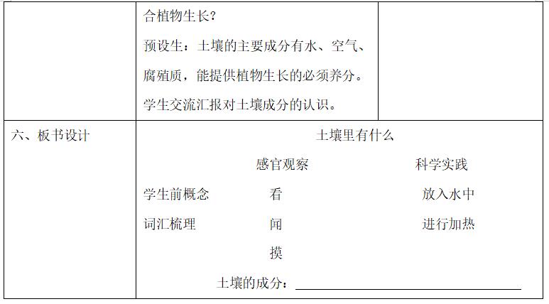 1.知道土壤的主要成分有黏粒、沙粒、腐殖质、水和空气等;