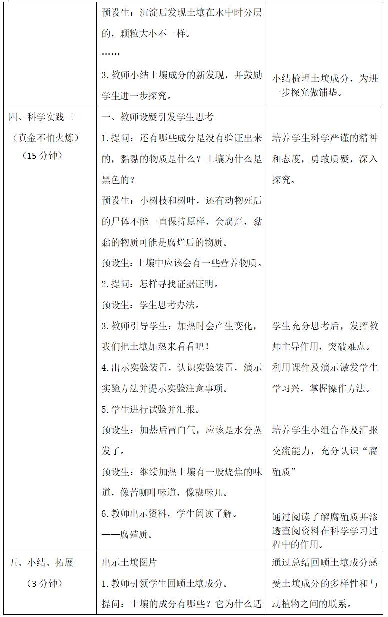 教师准备:土壤样本、三脚架、金属片、酒精灯、烧杯、水、玻璃棒、放大镜、湿毛巾。以上材料每组1套。