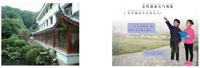 设计意图:不仅结合学生生活,认识了本地区的天气,通过图片了解其它地区的天气,使视角更开阔,并引导学生运用描述天气的方法多角度描述常见的天气。