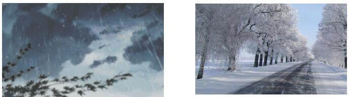 3.出示天气的图片,请你简单描述一下它们的特征。