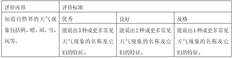 学生在教师指导下知道自然界的天气现象包括阴、晴、雨、雪、风等。