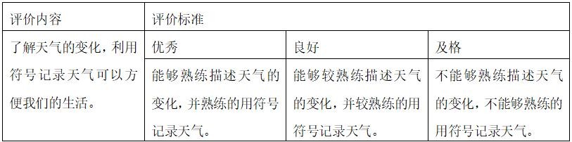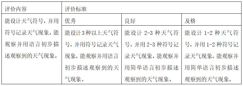 学生在教师指导下,能设计天气符号,并用符号记录天气现象,能观察并用语言初步描述观察到的天气现象。