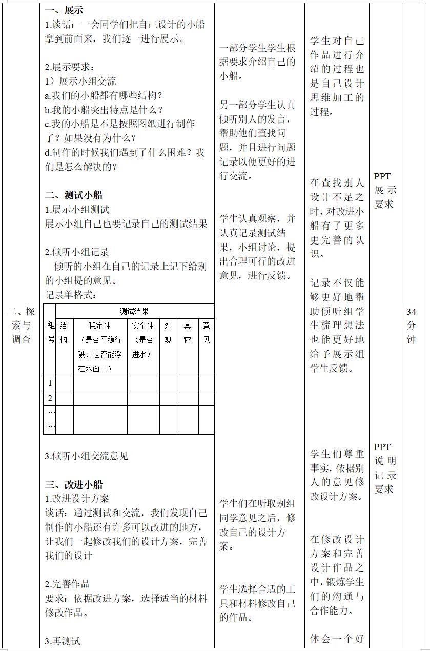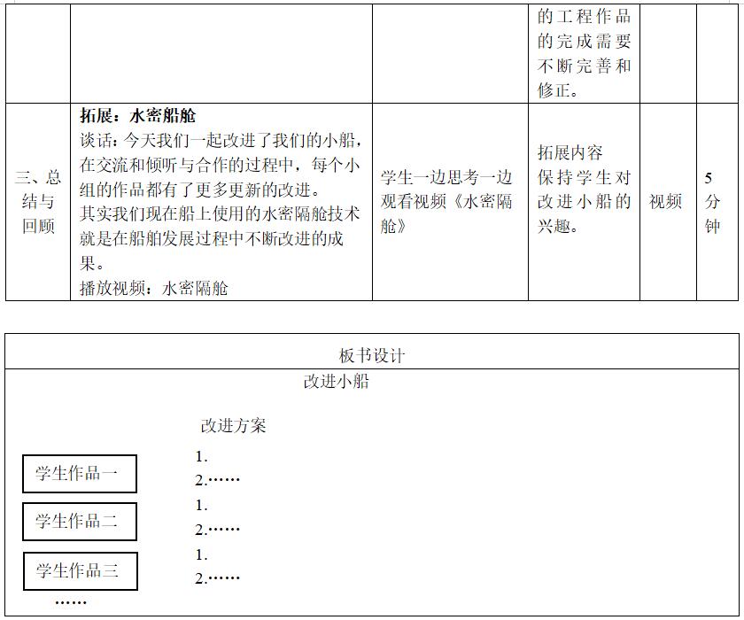 2.学生能够选择合适的工具对小船进行改进和完善。