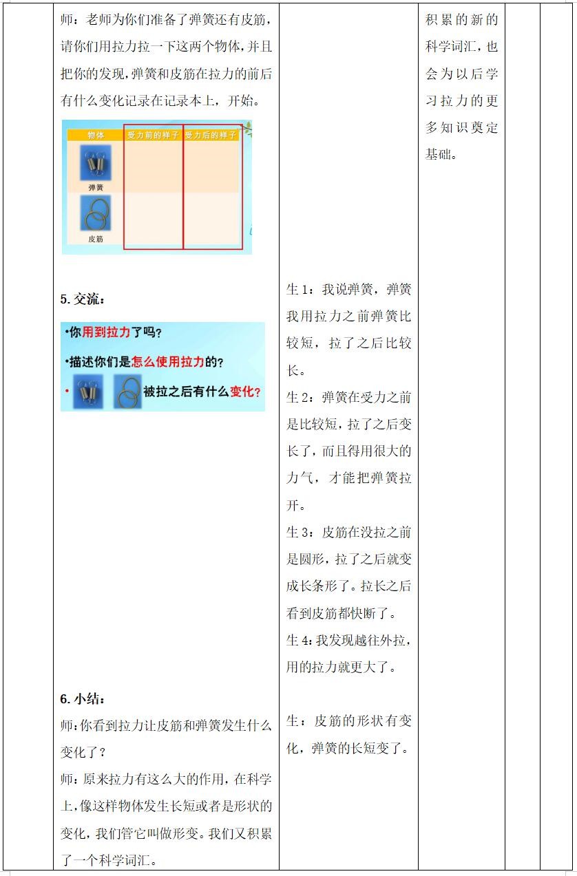 2.通过体验活动,发现拉力可以使物体的形状发生改变。