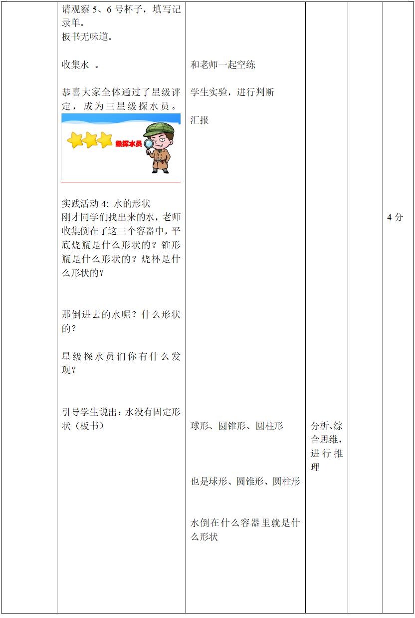 2.如实描述探究水特征的过程中观察到的现象,养成用事实说话的意识。