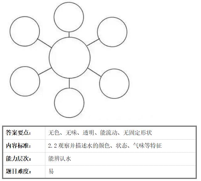 2.水是什么样的?请你将水的特点填写在气泡图中。