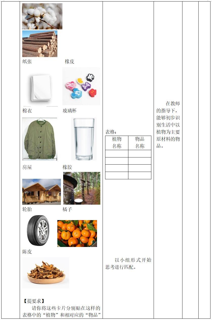 学生在教师的指导下,能够识别生活中以植物为主要原材料的物品。