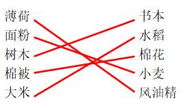 看看下列的物品都是以什么植物为原材料的,请将植物名称与相对应的物品名称用直线连接起来。
