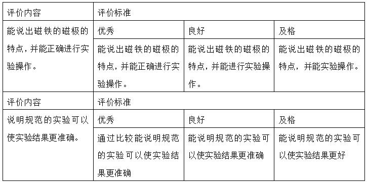 学生对探究磁铁磁极的活动表现出兴趣并积极投入。愿意倾听别人的发言,乐于表达自己的观点。能如实讲述观察到的实验现象,尤其当他人与自己原有的想法不同时,能尊重事实,养成用事实说话的习惯。