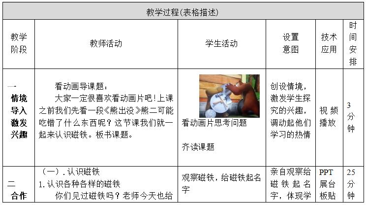 一年级学生,喜欢色彩感强的卡通形象和动手制作物品。他主张在教学中把活动原则实施于教学过程。于是,这节课以以兴趣促活动,以活动促获得。每一个环节都融入不同形式的小活动,达成了学习认识磁铁的过程。学生主动参与、手脑并用,从做中学。无论是动画片开头还是,磁铁杂技团的表演,到最后的解决生活中的问题,都是带着兴趣与挑战进行学习,保持了孩子的热情,满足了学生探究的欲望。