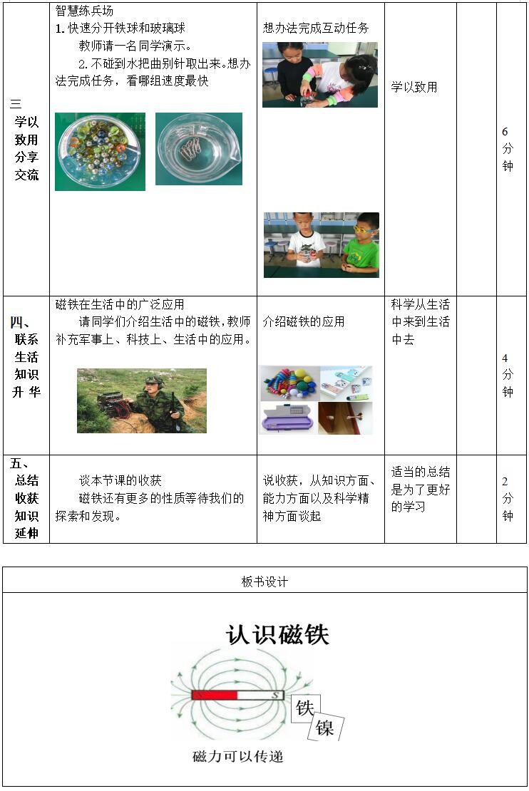 学生了解磁铁在生活中的运用,和运用磁铁解决生活中的实际问题。明确科学来源于生活并服务于生活。